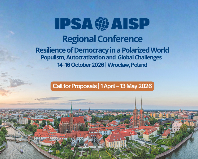 The Call for Proposals for IPSA’s Regional Conference on the theme Resilience of Democracy in a Polarized World: Populism, Autocratization, and Global Challenges, is open from 1 April to 13 May 2026. The regional conference will take place from 14–16 October 2026 in Wrocław, Poland. We welcome paper and panel proposals that examine democratic resilience, erosion, and transformation from …