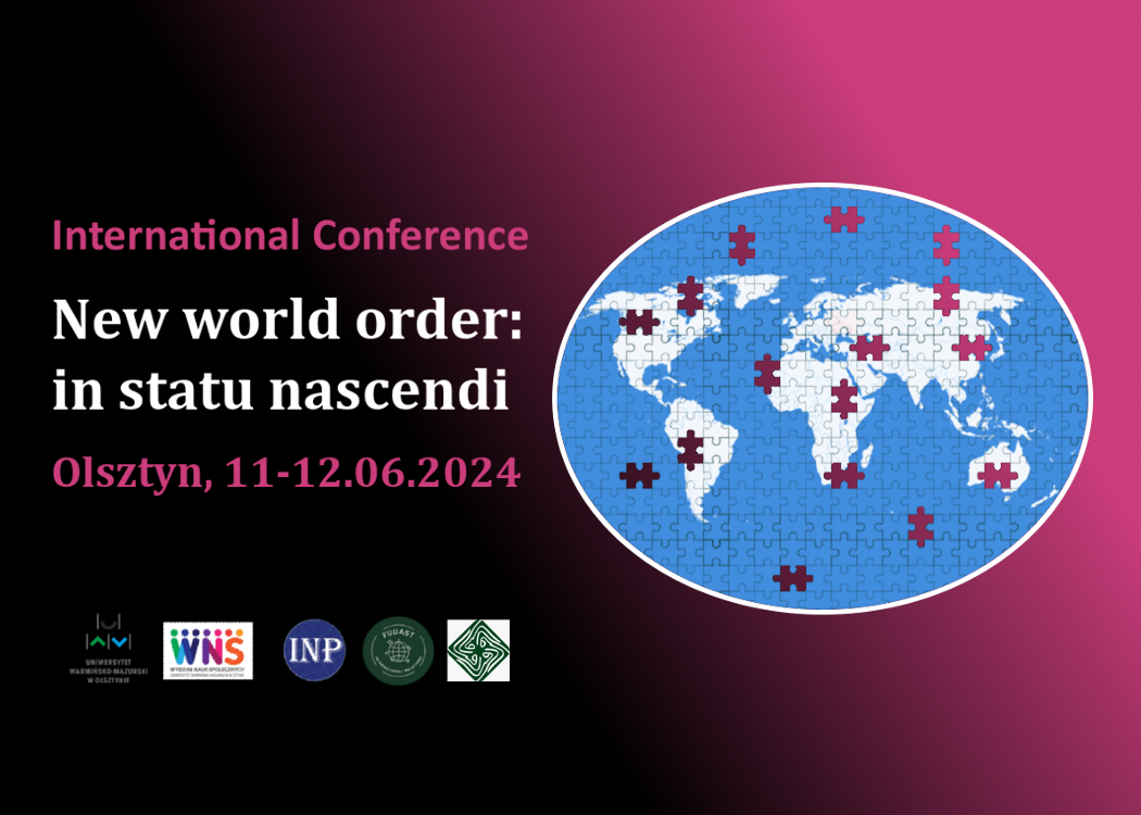 2nd International Scientific Conference: „New World Order: in Statu Nascendi” jointly organized by Institute of Political Science University of Warmia and Mazury in Olsztyn (Poland) and Department of International Relations Federal Urdu University of Arts, Science and Technology in Karachi (Pakistan). Place: Olsztyn, 11-12 June 2024. Call for paper EN http://wns.uwm.edu.pl/konferencje/nowy-porzadek-miedzynarodowy-in-statu-nascendi