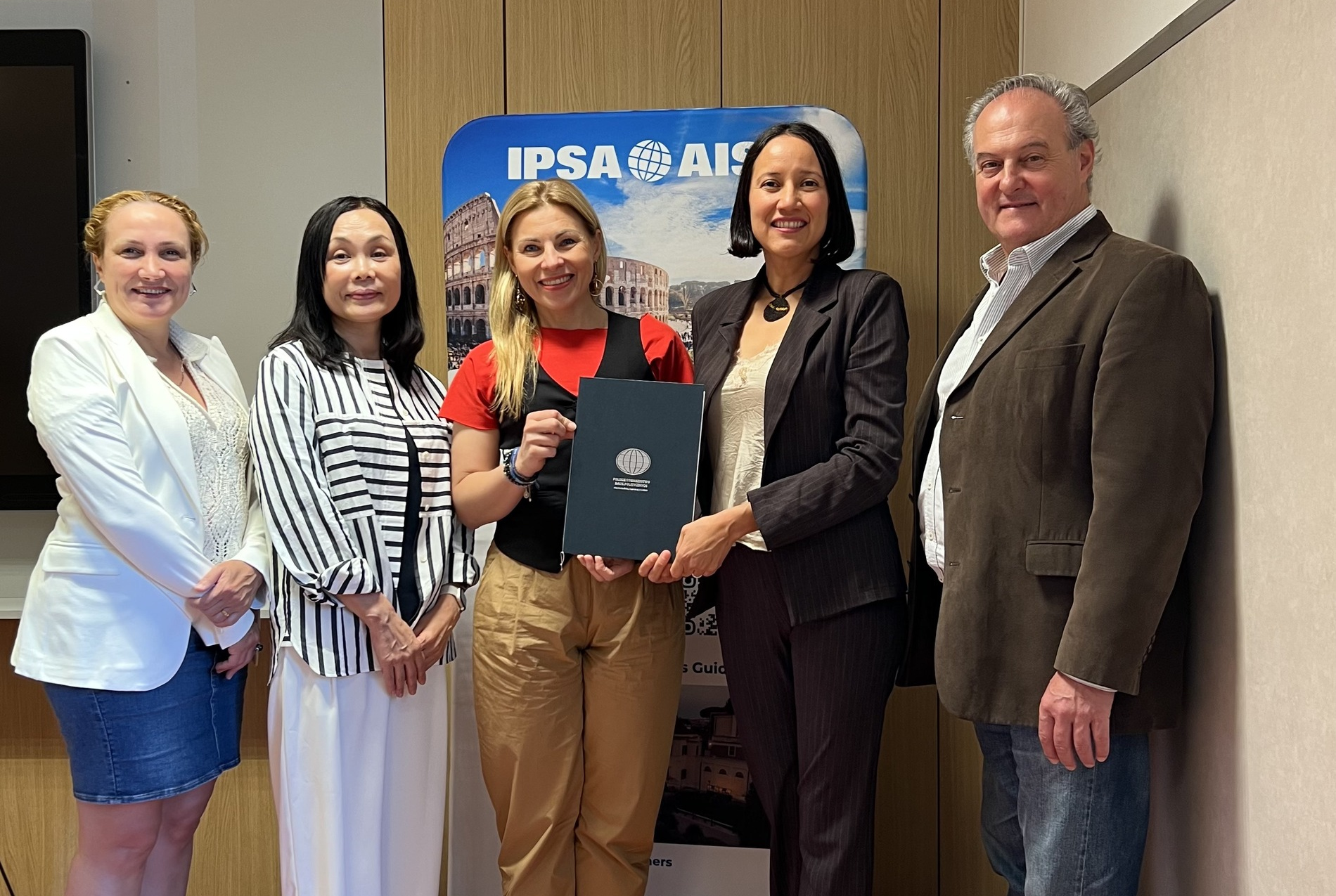 Na zdjęciu: Prezeska PTNP wraz z IPSA Summer Schools Coordinator – Azul A. Aguiar Aguilar, Prezydent IPSA Yuko Kasuya, poprzednim Prezydentem IPSA – Pablo Oñate oraz przyszłą Prezydentką IPSA – Hasret Dikici Bilgin.