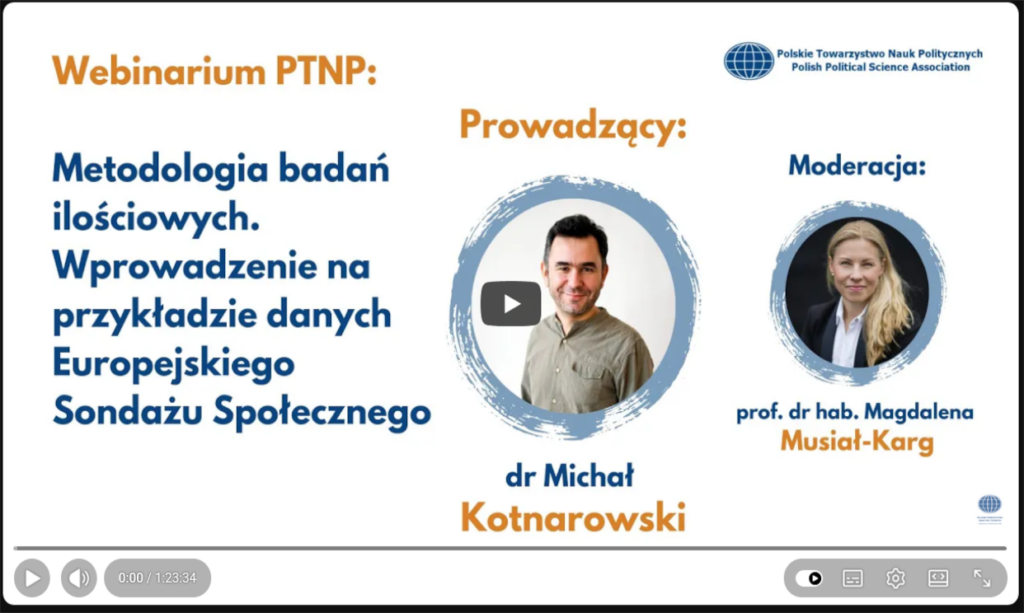 Podczas webinaru zapoznano uczestników z badaniem Europejski Sondaż Społeczny (ESS) oraz z możliwościami analitycznymi związanymi z wykorzystaniem danych z tego badania. Europejski Sondaż Społeczny jest międzynarodowym akademickim projektem badawczym. W ramach ESS regularnie prowadzone są badania sondażowe równolegle w ponad trzydziestu krajach europejskich. ESS dostarcza danych na temat postaw i zachowań mieszkańców Europy w najważniejszych kwestiach społeczno-politycznych. Badanie prowadzone jest nieprzerwanie od roku 2002, a kolejne rundy badania realizowane są co dwa lata. Dane ESS umożliwiają zarówno porównania międzynarodowe, jak i śledzenie zmian postaw i zachowań w czasie. Wszystkie dane z poszczególnych rund badania ESS są udostępniane bezpłatnie naukowcom i studentom. Polska uczestniczy w badaniu ESS od początku, tj. od 2002 roku.